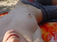Smiley amateur brunette exposing herself