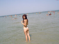Busty brunette nudist girl at vacation in Croatia