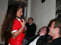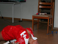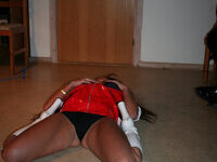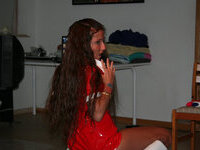 Slutty Housewife wearing a Skin Tight Fitted Shiny Rubber Latex Skirt and Shiny Stockings So Tight She Can Hardly Walk in it is Ready For Cock Sucking and Anal Sex